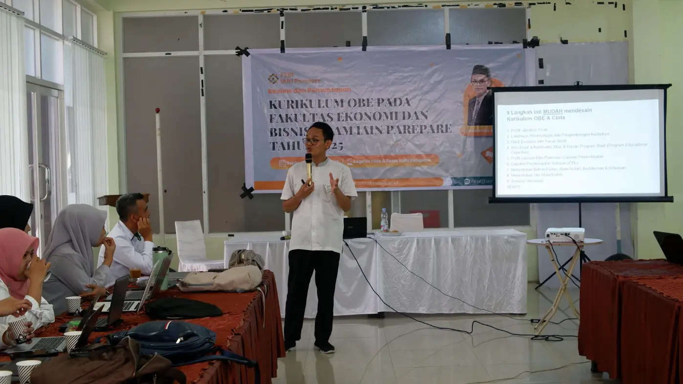Humas IAIN Parepare — Fakultas Ekonomi dan Bisnis Islam (FEBI) Institut Agama Islam Negeri (IAIN) Parepare menggelar kegiatan Review Kurikulum Outcome Based Education (OBE) tahun 2025 di ruang meeting Café Lagota Parepare, Senin (03/11/2025).