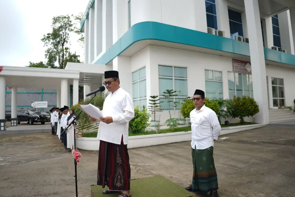 Mengawali amanatnya, Prof. Hannani menyampaikan ungkapan duka cita mendalam atas musibah yang menimpa 67 santri di Pesantren Al-Khoziny, Sidoarjo, Jawa Timur. “I _nnalillahi wa inna ilaihi raji'un_ . Kita semua berduka, bangsa ini berduka," ujarnya. Musibah ini, lanjutnya, menjadi pengingat bagi seluruh pihak untuk terus berbenah demi menjamin keselamatan di lingkungan pesantren. Rektor juga menegaskan bahwa negara hadir dan peduli, ditandai dengan kehadiran langsung Kementerian Agama di lokasi bencana untuk memberikan bantuan dan memastikan proses pemulihan berjalan lancar.