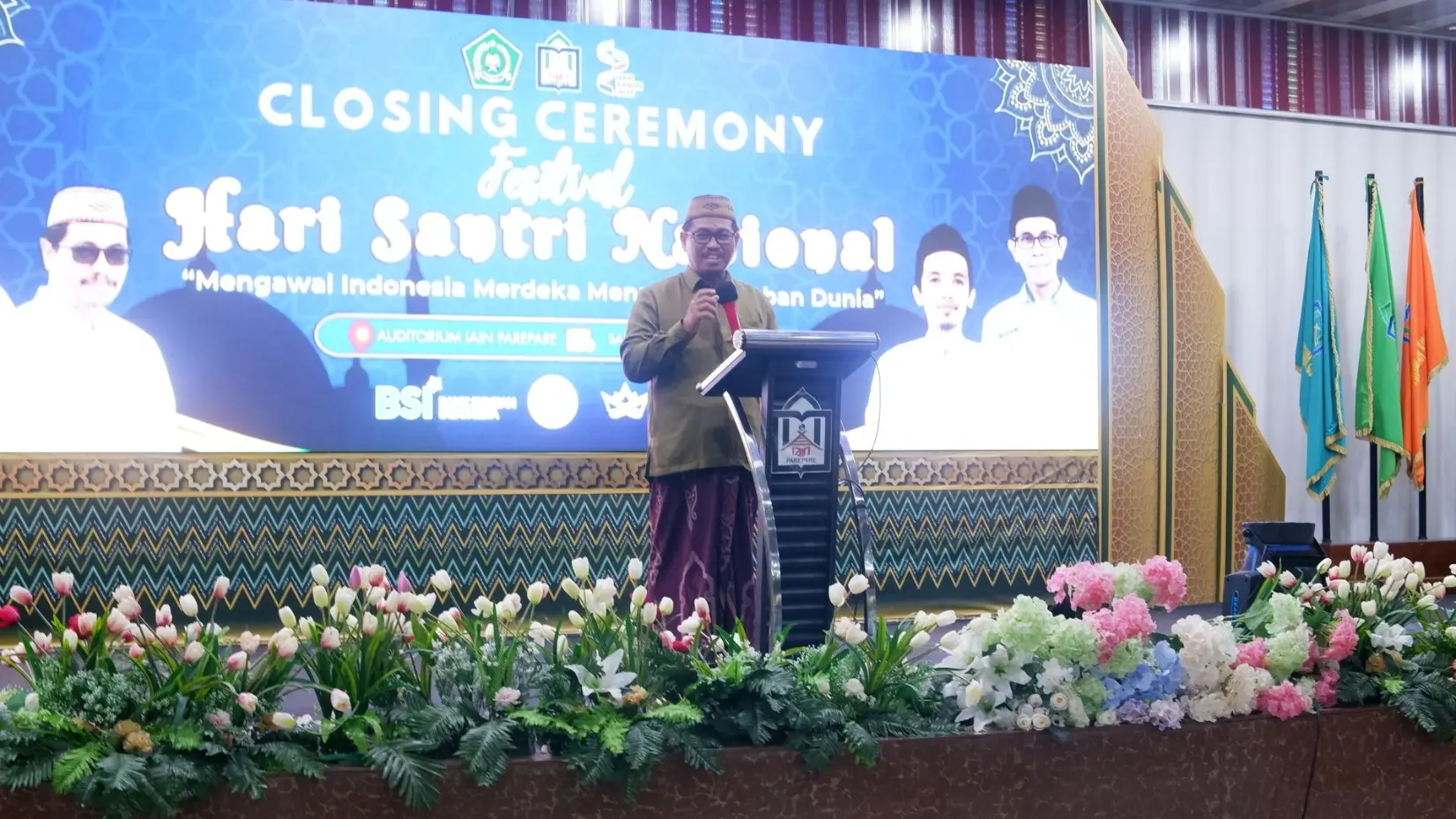 Humas IAIN Parepare — Suasana Auditorium Institut Agama Islam Negeri (IAIN) Parepare tampak semarak pada Sabtu malam (25/10/25). Ratusan santri dari berbagai pesantren se-Sulawesi Selatan dan sekitarnya berkumpul untuk menyaksikan malam puncak penutupan Festival Santri IAIN Parepare Tahun 2025. Kegiatan ini secara resmi ditutup oleh Rektor IAIN Parepare, Prof. Dr. Hannani, M.Ag.